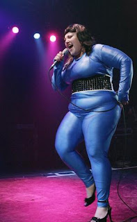 It's no surprise that, for the most part, clothes look good on smaller people. There are some gals who pull off crazy looks with panache. Beth Ditto, my girl from The Gossip, is quite fearless and that is commendable. However, I was reading Vanity Fair last night and the interviewer showed a picture of Beth Ditto to Oscar de la Renta and he cringed. Like shuttered when he saw her picture. It is shocking to see someone of that girth jammed into a Herve Leger bandage dress. I mean I saw Hilary Duff in one and even she wasn't looking in top form.